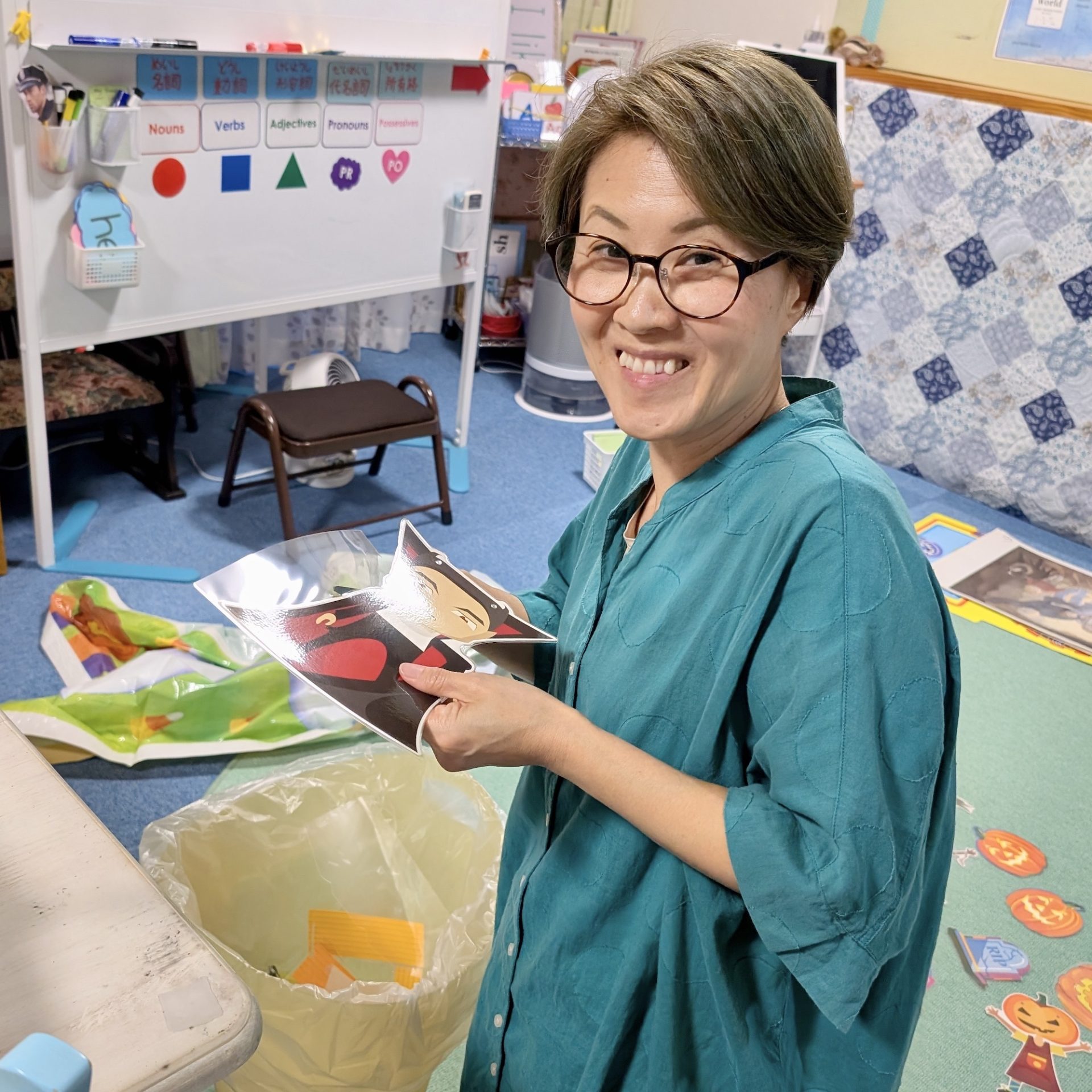Halloween is coming! 2025年10月8日 最終更新日時 : 2025年10月8日 rainbowphonics こんにちは。早いもので、もう October ですね。10月といえば、もちろん Halloween! Rainbow Phonics の先生達&Staff は、早速、みんなで Halloween Decoration をしましたよ。ちょっとのぞいてみて見ますか?教室もすっかり Halloween になったので、これからは、楽しく、Halloween を学んでいきましょうね! 生徒さんが折り紙で作ってくれた飾りです。素敵でしょう?Akiko 先生が自分で作った Wreath と、ハイチーズ! FacebookXBlueskyCopy