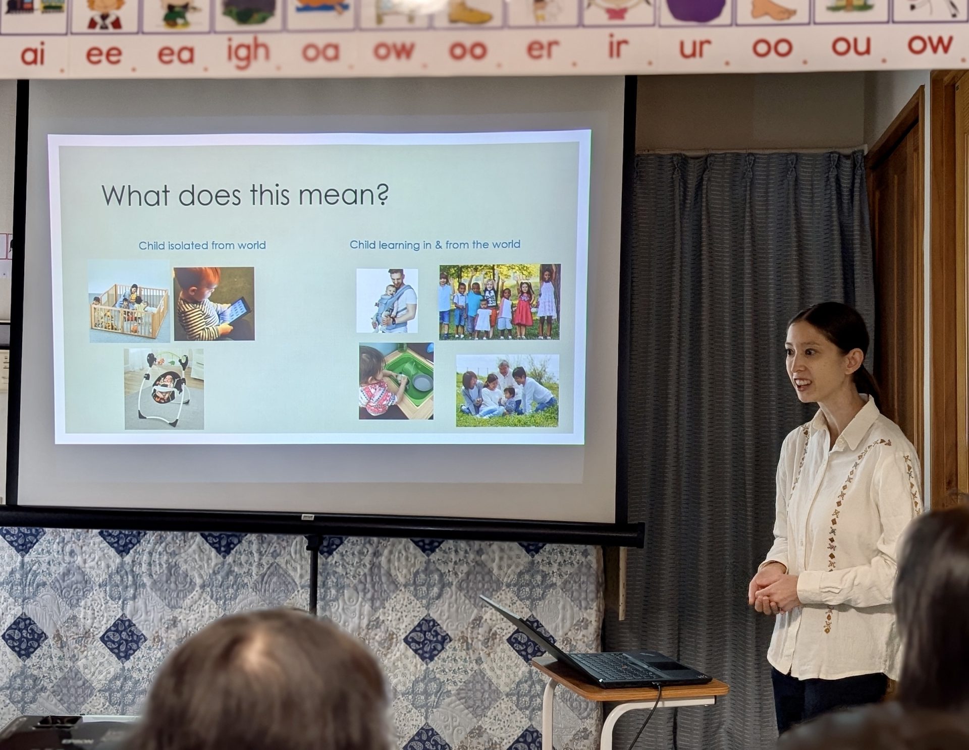 こんにちは!Ruthie の娘さんが、今日、Rainbow Phonics でプレゼンテーションをしてくれました。内容は、メキシコでの妊娠・出産・子育てについてです。娘さんは、今、メキシコで1歳になった息子さんの子育てをしているのですが、メキシコと日本の文化の違いを踏まえて、どのように出産したか、また、スペイン語・英語・日本語のトリリンガル子育てはどうやっているのかなど、とても興味深いお話でした。Q&Aを交えての2時間でしたが、あっという間の時間でしたよ。コロナ禍後、ひさしぶりのイベントで、ちょっと緊張しましたが、またこれからも、こんな機会があると良いですね。